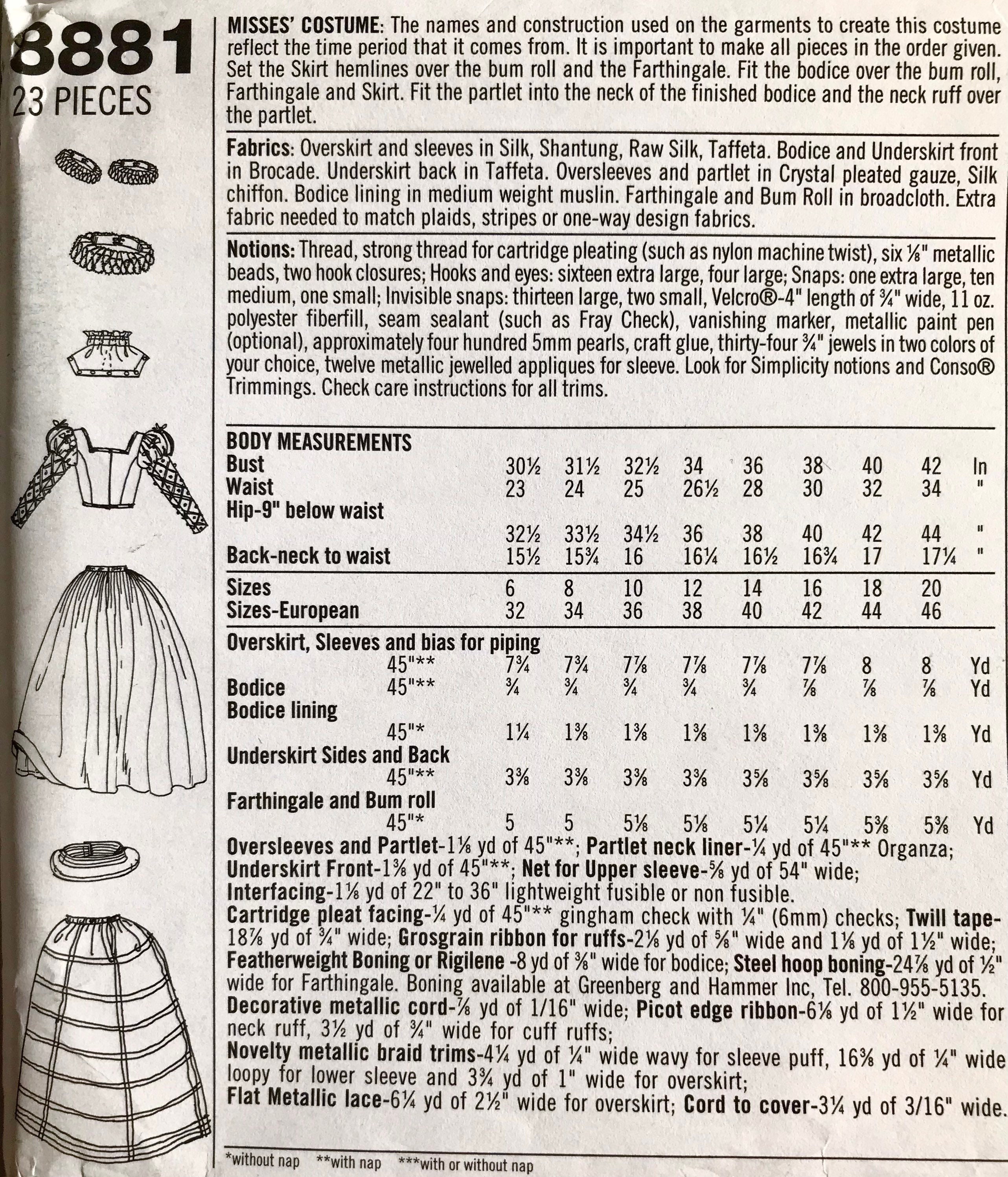 Simplicity 8881 Misses Costume Pattern Elizabethan Dress Etsy Ireland